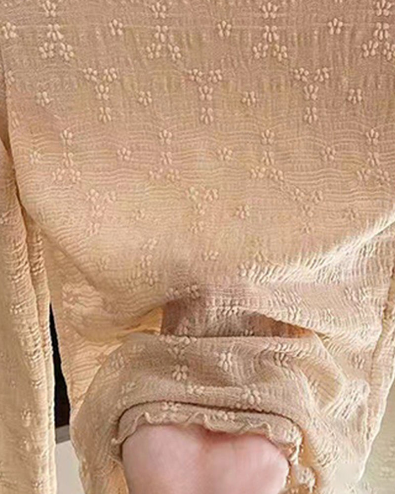 Striped Print Zipper Front Long Sleeve Top Waffle Knit Loose Fitting Tunic Tops