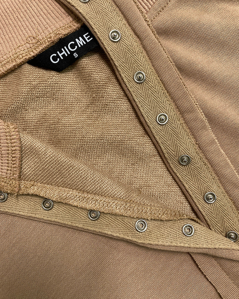 Polo Collar Long Sleeve Sweatshirt Loose Fit Side Slit Dip Hem Casual Top