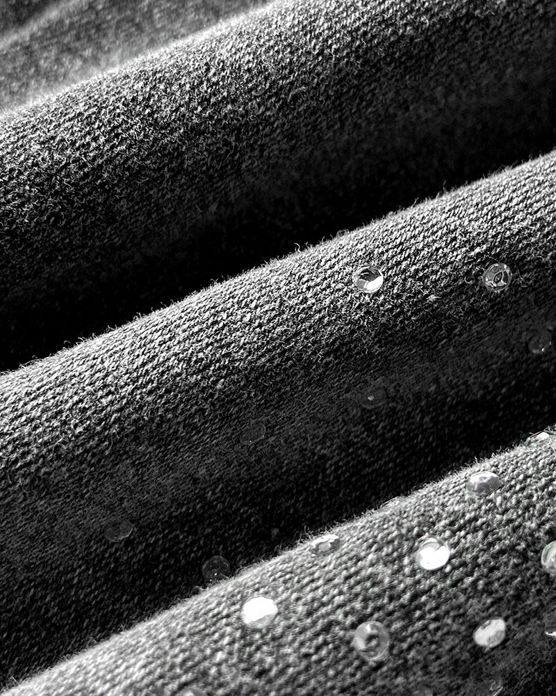 Styling & Pairing: Pairs effortlessly with cropped tops, fitted blouses, or slim-knit sweaters; the sparkly rhinestone detail makes it ideal for street style, casual outings, or elevated everyday looks.