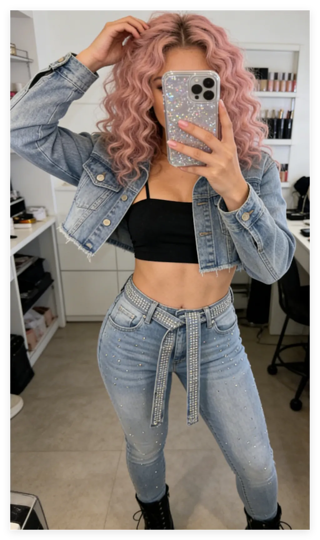 Occasion & Use: Suitable for daily wear, dates, afternoon gatherings, and light parties, this rhinestone jeans set delivers a chic, slightly luxurious look that works across seasons and styled occasions.