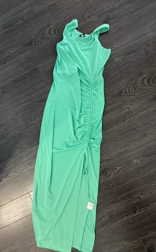 Side Slit Drawstring Ruched Bodycon Casual Sun Maxi Dresses Sleeveless Ribbed Tank Dress