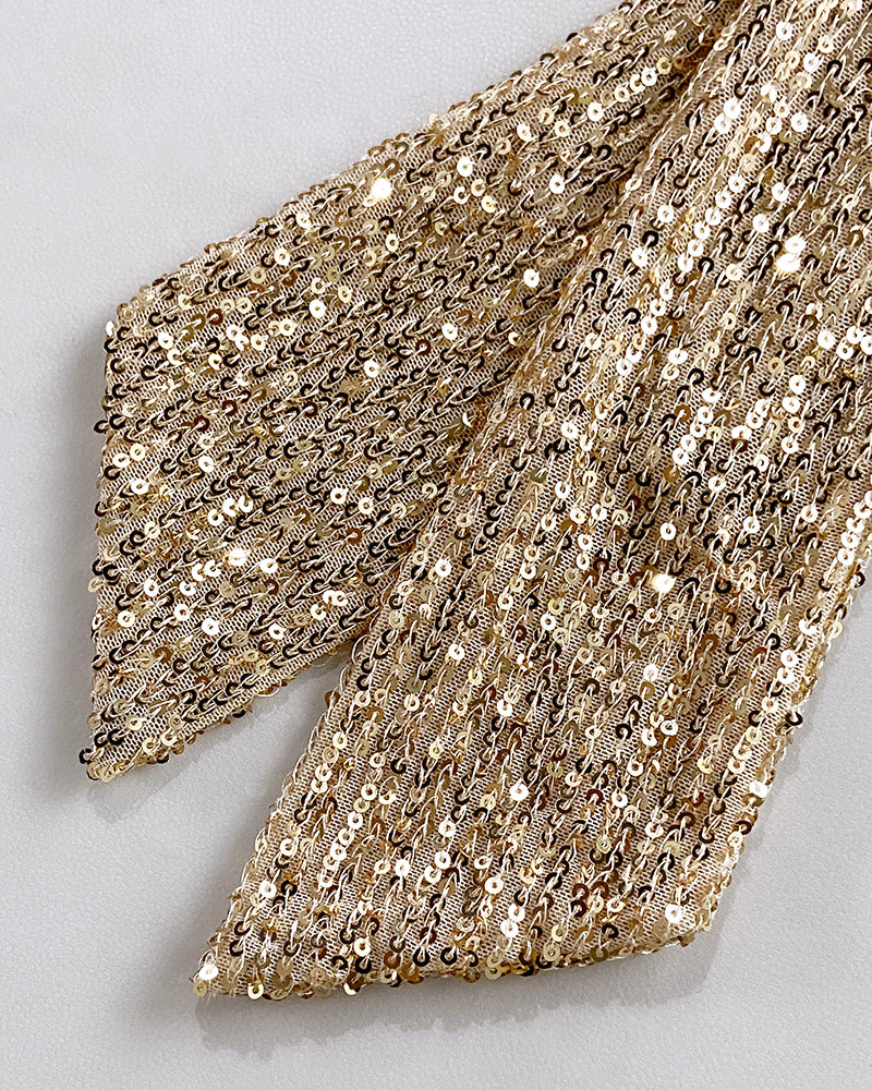 Color Contrast: Classic black meets dazzling gold sequins—bold and glamorous for standout evening looks.