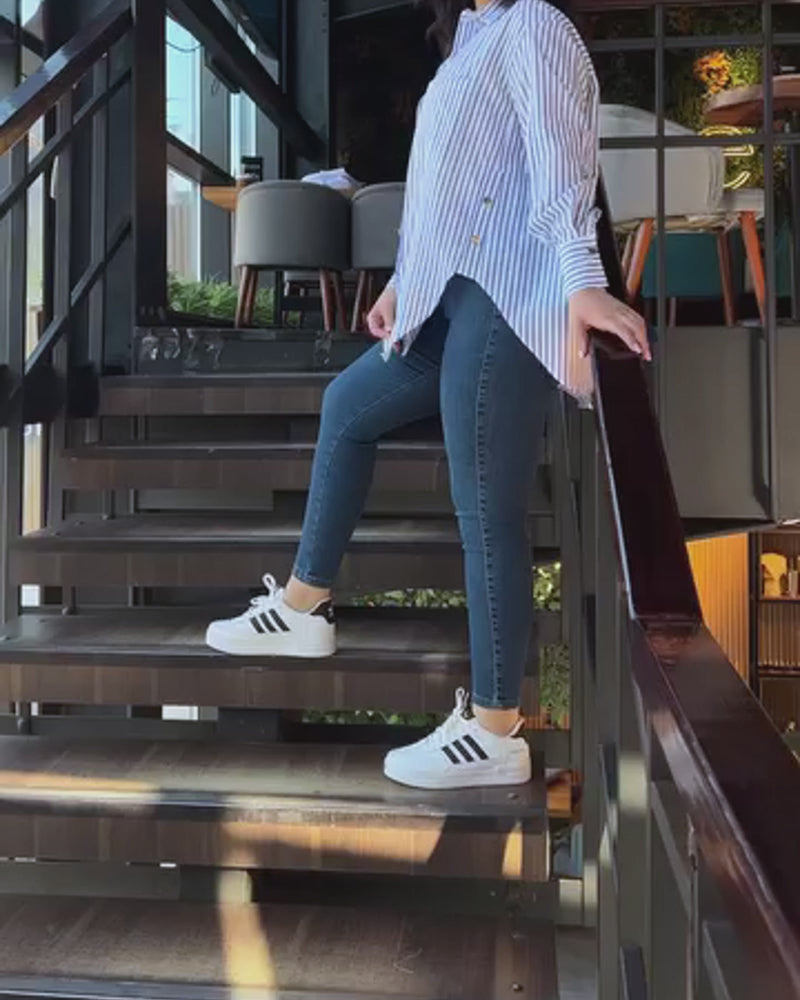 Striped Turn-down Collar Long Sleeve Blouse Casual Button Down T Shirts Top