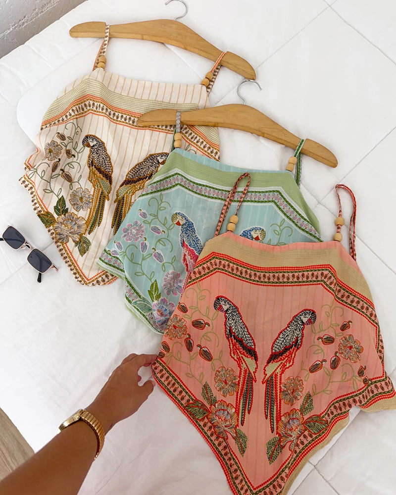 This set is so funthose parrot embroidery details are chefs kiss!