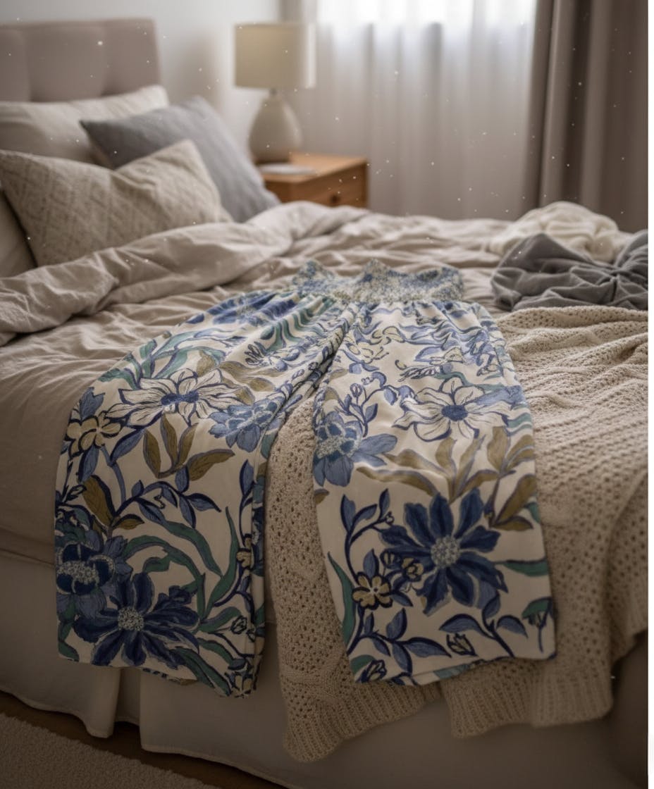 Design Details: Features vintage-inspired floral prints. The shirred elastic waist ensures a secure yet comfortable fit while enhancing the overall drape of the pants.