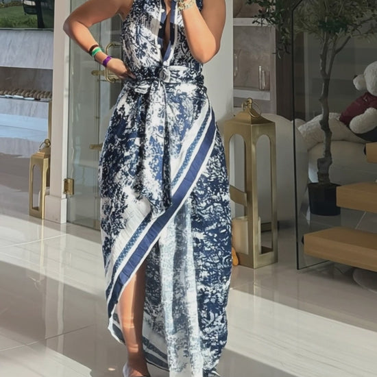 Styling & Pairing: Style with straw hats and flat sandals for a resort look, or pair with heeled slides, a woven bag, and statement earrings. The vintage ink print works well with neutral accessories, letting the dress remain the focal point.