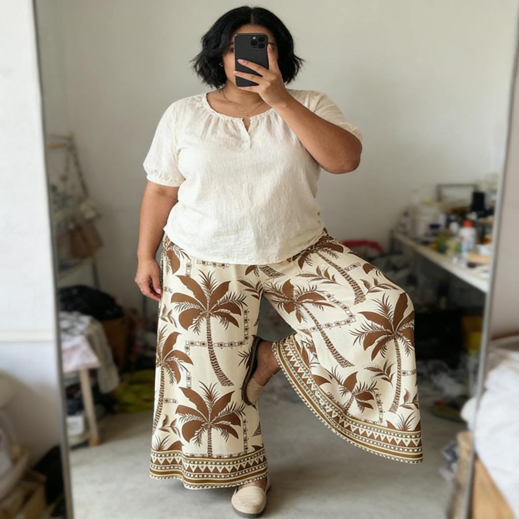 Occasion & Use: Suitable for vacations, beach outings, casual daily wear, or relaxed workdays. The vintage prints and wide-leg silhouette create a laid-back, effortless style perfect for spring to pre-fall.