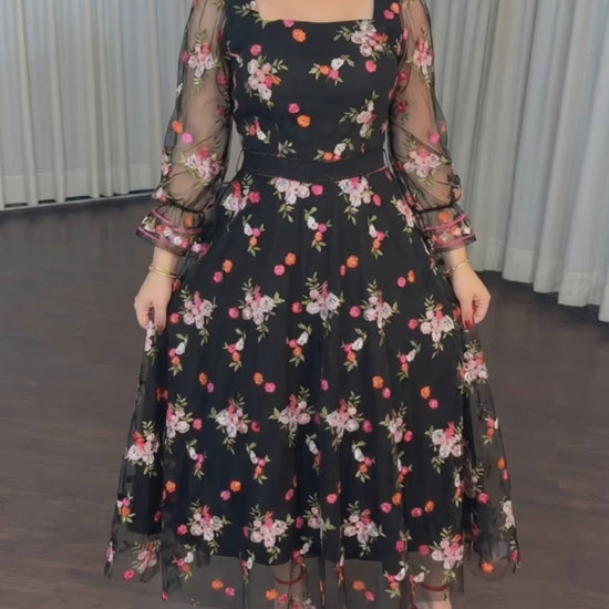 Occasion & Use: Ideal for weddings, evening events, birthdays, or semi-formal occasions. The layered mesh, embroidered details, and elegant silhouette create a versatile dress suitable for polished, romantic, and vintage-inspired looks.