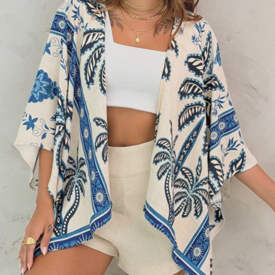 Silhouette & Fit: Oversized loose fit with half-length batwing sleeves and open front ensures easy layering, body coverage, and effortless movement, flattering a variety of body shapes while exuding a relaxed tropical vibe.